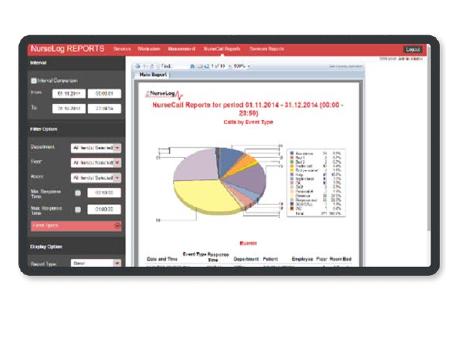 Menyediakan kemampuan untuk mengukur Key Performance Indicator (KPI) dari perawat. Sistem kami mampu mengukur jumlah panggilan, pengecekan malam, trend kejadian, waktu merespon, waktu bersama pasien, deviasi dari ekspektasi, performa staff, dan data lainnya. Pelaporan ini dapat meningkatkan koordinasi antar staff sekaligus menjadi evaluasi terhadap sistem RS.