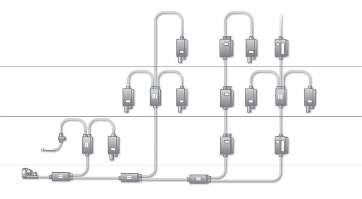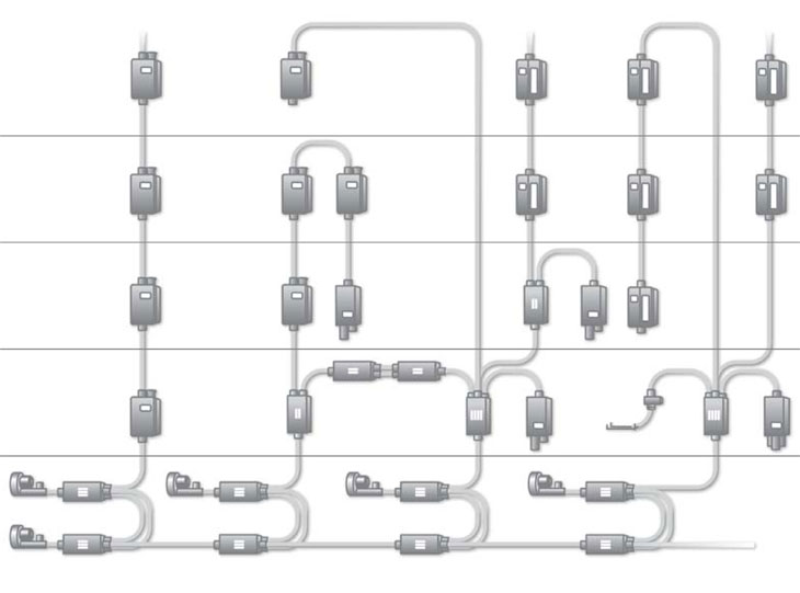 Struktur model pemasangan dari Pneumatic Tube System yang dapat disesuaikan dengan kebutuhan.